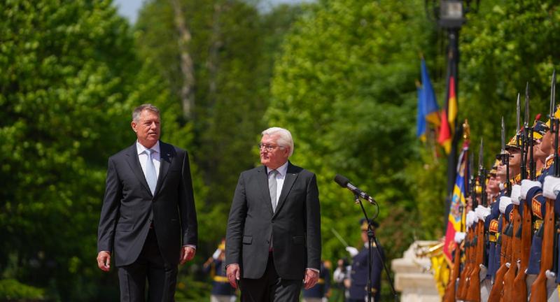 Klaus Iohannis l-a primit, joi, la Sibiu pe Frank-Walter Steinmeier, aflat într-o vizită oficială de câteva zile în România.