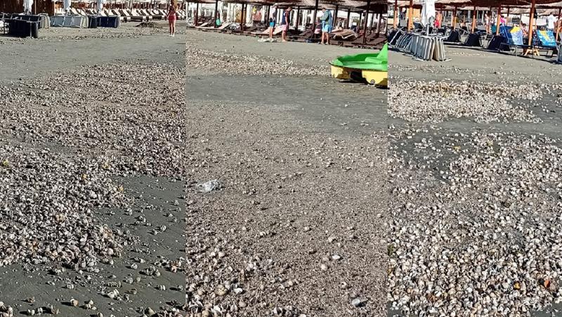 Urmările furtunii de pe litoral. Plaja plină de scoici, apa este rece și are miros foarte urât