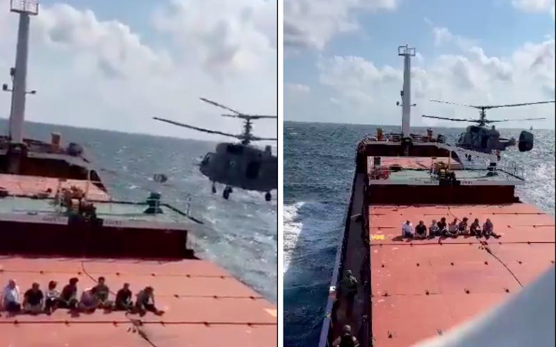 Rusia a declarat că nava de război a tras focuri de avertisment atunci când căpitanul navei de marfă uscată sub pavilion Palau nu a răspuns la solicitarea de a se opri pentru o inspecție.
