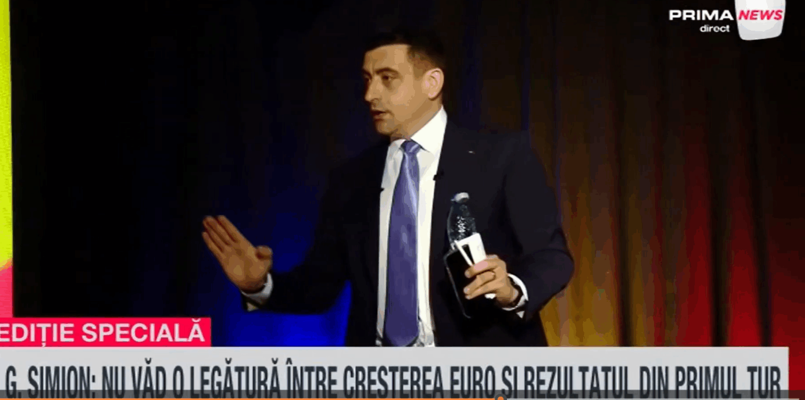 George Simion nu l-a mai așteptat pe contracandidatul său Nicușor Dan la dezbaterea de la Prima TV. Minuntele de dezbatere i le-a oferit cadou adversarului. Simion a acuzat oboseala în urma maratonului între televiziuni și a motivat că este așteptat de familie.